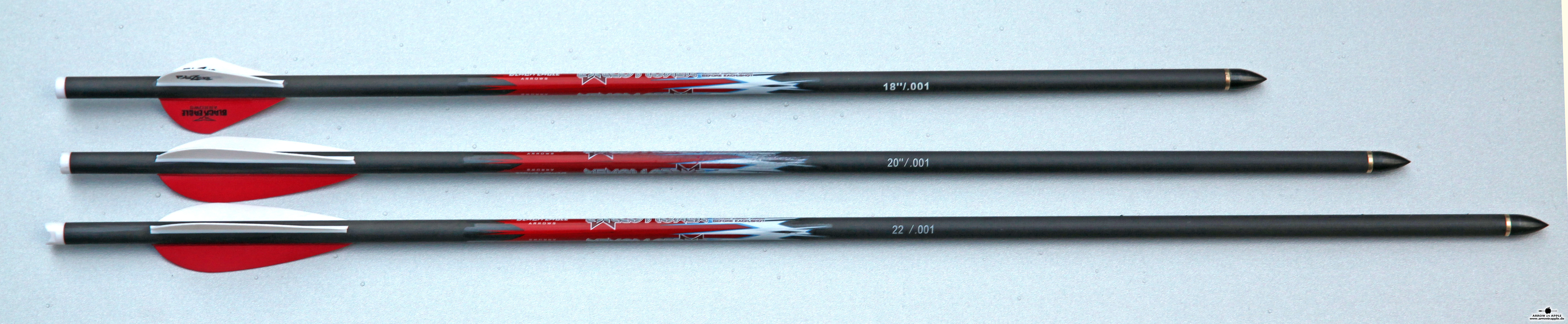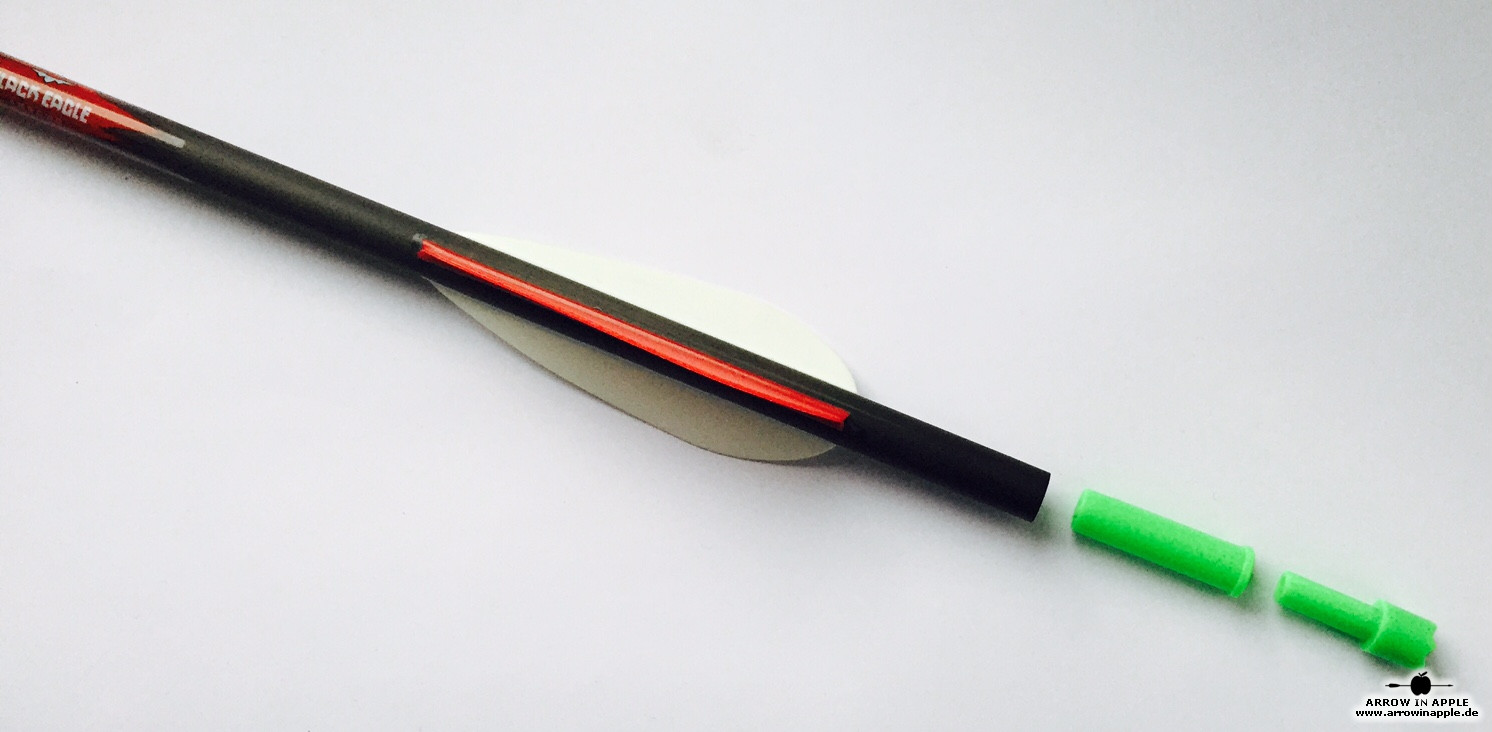Premium crossbow carbon arrow with straightness of 0.001. In 18, 20 and 22 Inch length. With Moon- or Flatnocks.