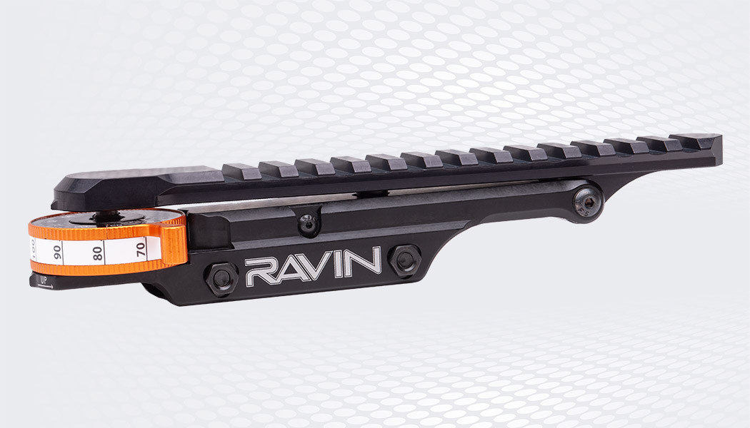 The Ravin Jack Plate is an elevation scope mount designed to shoot 20 to 200 yards with 250 minutes on an angle (MOA) adjustment and can be paired with a Tactical Crossbow Scope.