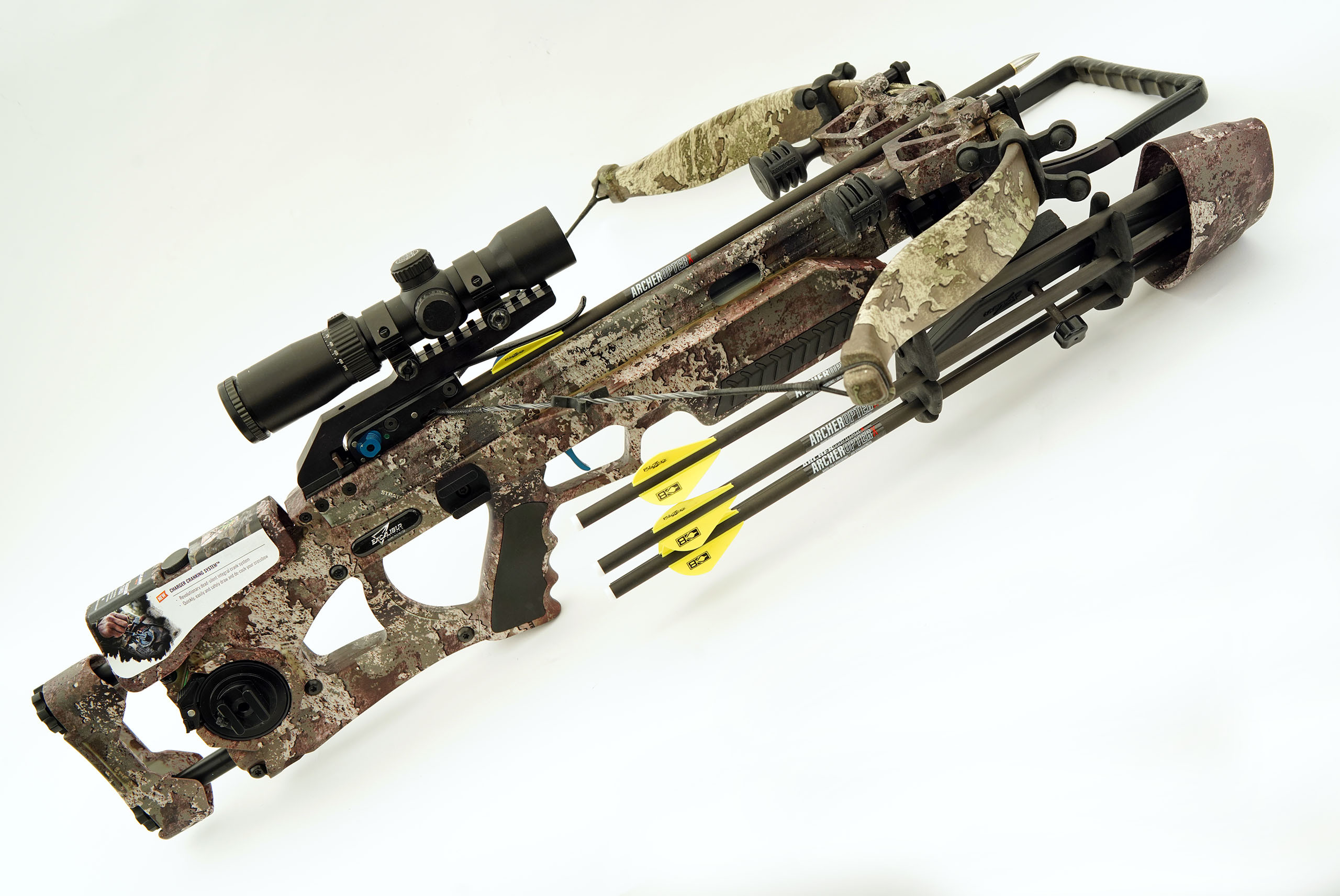 The new Charger Crank System is the world first dead-silent integrated crank aid, allowing you to generate 360fps speeds and over 100 ft. lbs. of kinetic energy with just 12 pounds of force. With no clicking, and the safest means of de-cocking on the market. It also enhances accuracy by ensuring flawless string alignment at every shot.