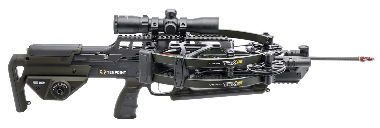 Discover the fastest compact crossbow in the world — the TRX 26 from TenPoint. The TRX 26 is TenPoint's lightest and narrowest reverse-draw crossbow ever. Shooting at 460 FPS, it is engineered with a minimal footprint and low profile—just 26.5 inches long and 5.75 inches wide. This design offers the freedom and mobility to venture further while carrying a stand or essential gear, and it provides increased shooting opportunities by reducing the chance of cam or limb contact in a treestand or ground blind. Equipped with a TriggerTech trigger, ZERO-Trac Barrel™, and GUIDE-Lock™ Arrow Rest System, the TRX 26 offers one of the most secure and consistent launch platforms available on a crossbow. The ACU-Lock™ Scope Bridge provides an excellent foundation for scope stability, and the ACUSlide MAXX™ allows for silent and safe de-cocking. Features & Benefits Discover the fastest compact crossbow in the world—the TRX 26 from TenPoint. The TRX 26 is TenPoint's lightest and narrowest reverse-draw crossbow ever. Shooting at 460 FPS, it is engineered with a minimal footprint and low profile—just 26.5 inches long and 5.75 inches wide. This design offers the freedom and mobility to venture further while carrying a stand or essential gear, and it provides increased shooting opportunities by reducing the chance of cam or limb contact in a treestand or ground blind. Equipped with a TriggerTech trigger, ZERO-Trac Barrel™, and GUIDE-Lock™ Arrow Rest System, the TRX 26 offers one of the most secure and consistent launch platforms available on a crossbow. The ACU-Lock™ Scope Bridge provides an excellent foundation for scope stability, and the ACUSlide MAXX™ allows for silent and safe de-cocking. Features & Benefits
